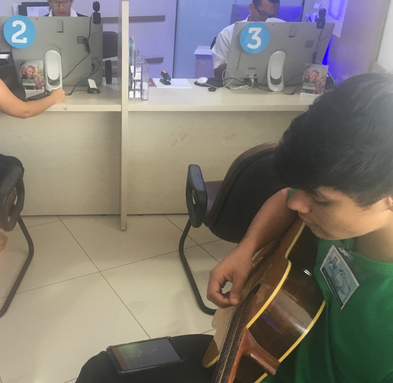 Durante toda a manhã, o pianista Joel Tavares brindou os pacientes com a boa música e à tarde, o instrumento escolhido para recepcionar os pacientes foi o violão, com Enzo Samide Carvalho.